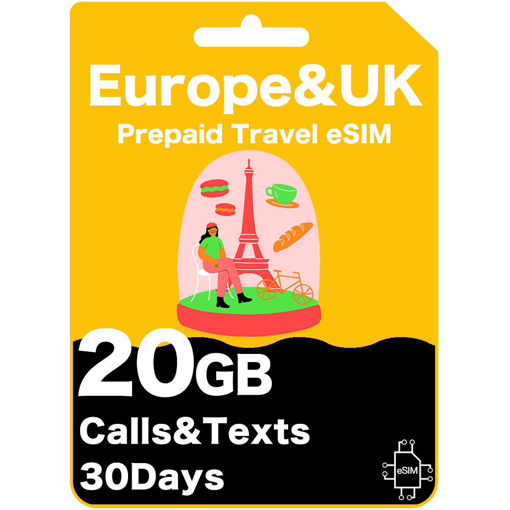 Europe & UK Prepaid Travel eSIM Card - Orange
